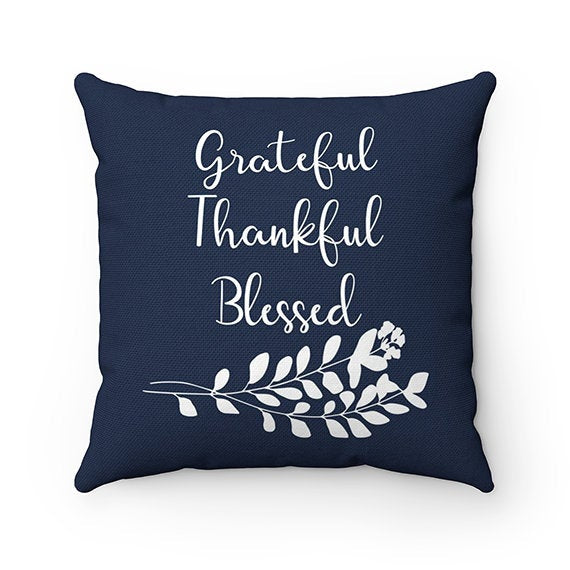 Monogram Throw Pillow with Sayings Grateful Thankful Blessed, Blue